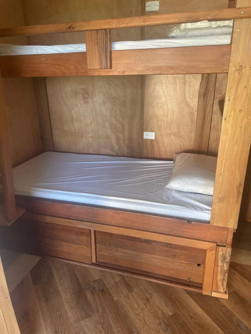 2xdorms with 6 beds in each,all new beds quiet and comfortable a shelf lockable storage and a usb and power point per bed